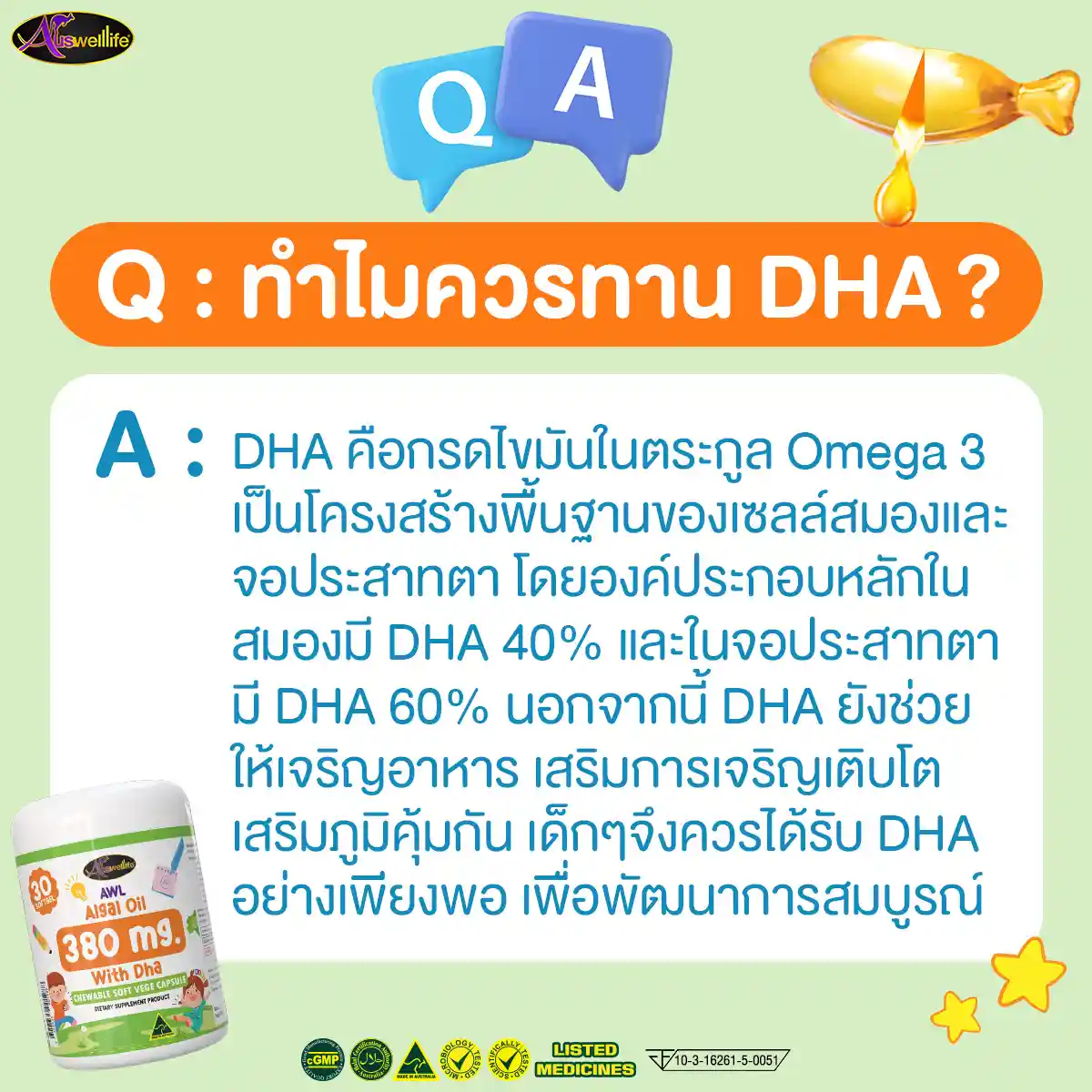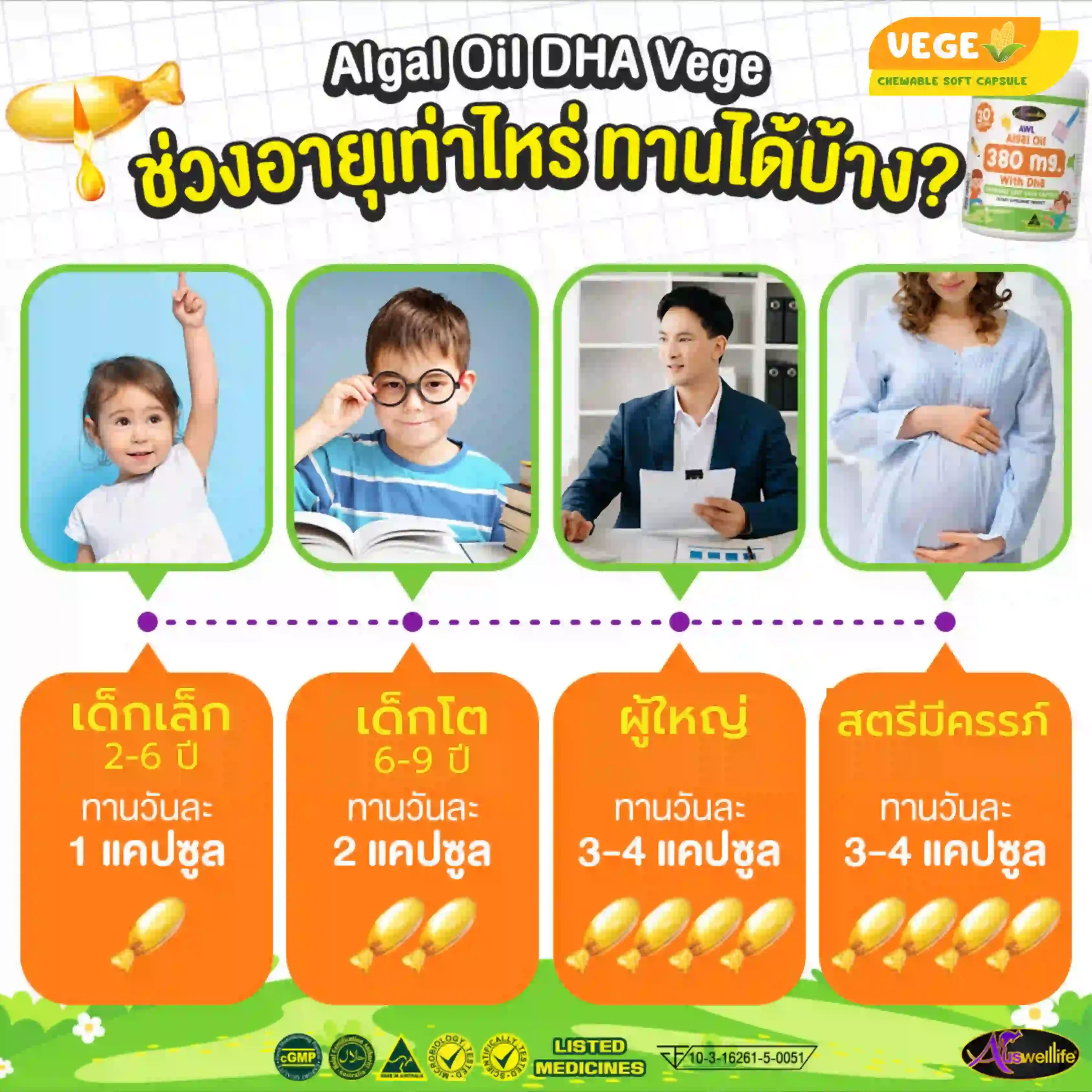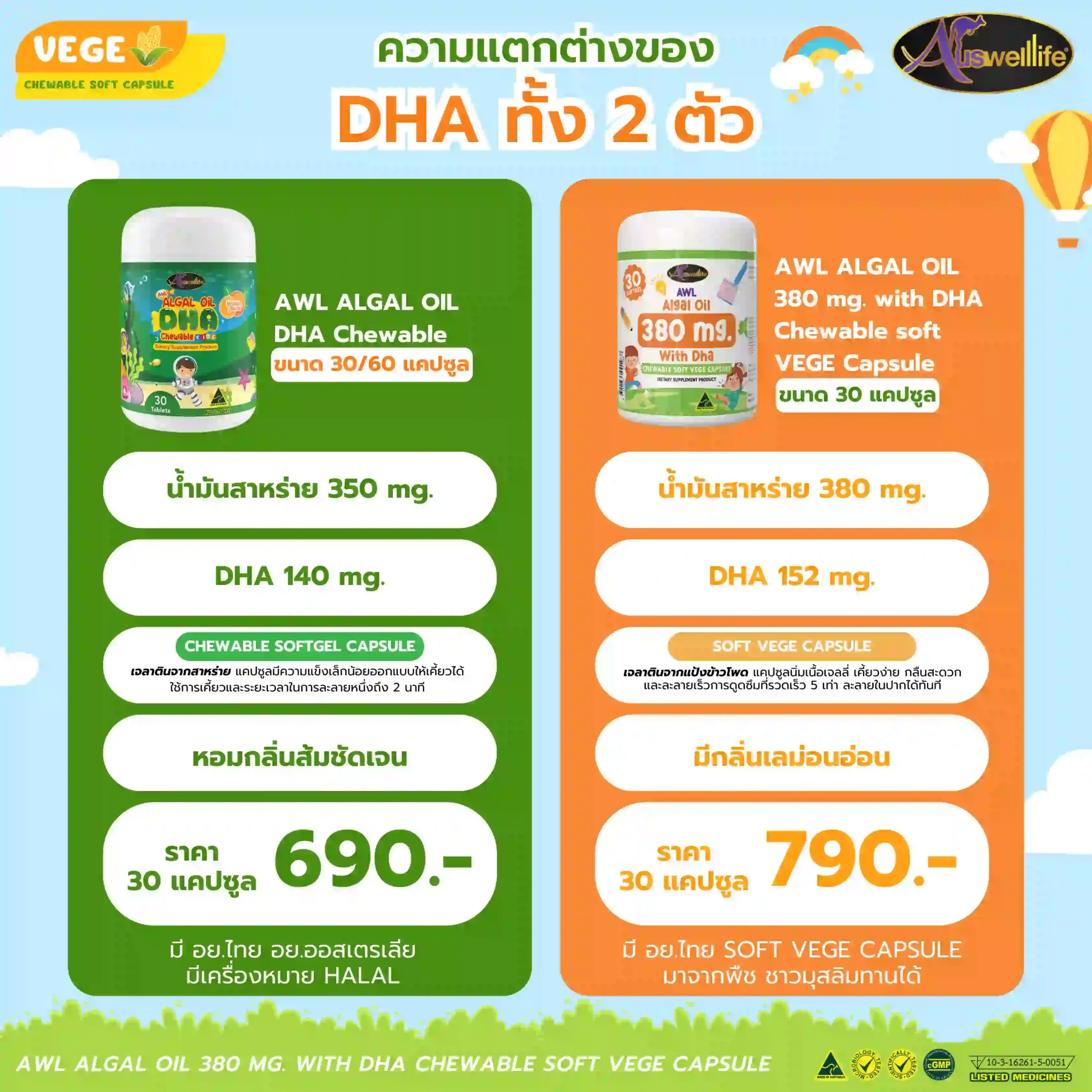แม่ๆจ๋า DHA ตัวนี้เด็ดกว่าเดิมอีกนะ ลูกสาวบอก ทาน DHA Vege รู้สึกว่าหนูจะฉลาด คูณ 2 ตัวเดิม Algal Oil DHA จากสาหร่าย ว่าดีแล้ว ลองตัวใหม่ดูหน่อย ถือว่าดีเลยคะ ลูกสาวชอบมาก ได้โปร 2 แถม 1 หยั่งคุ้ม